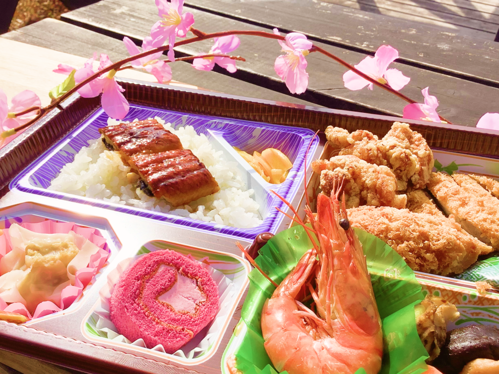 しだれ桜を眺めながら楽しむ、こだわりのお弁当とドリンクをご提供。ピクニック気分を味わえます。