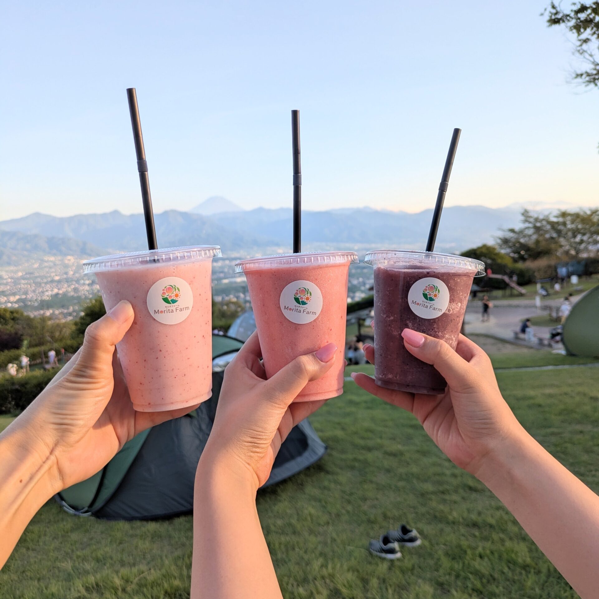 | 自分たちで育てた桃と農家さんから直接仕入れた山梨県産の果物を、素材そのままの美味しさを大切にスムージーにしています。 | |