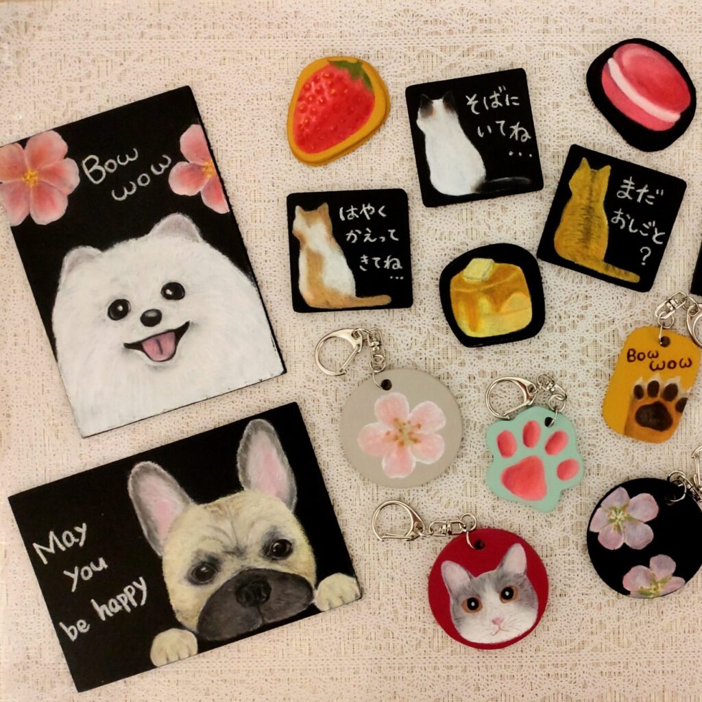 | ブラックボード素材にオイルパステルで描くオリジナル作品を制作。インテリア作品やウェルカムボード、缶バッチやミラーなどの雑貨も販売します。 | |