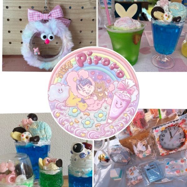 | ホイップデコ販売子供のお小遣いで購入できる商品となってます。ワークショップは、オリジナルパフェやキーホルダーなどの体験が出来ます。 | |