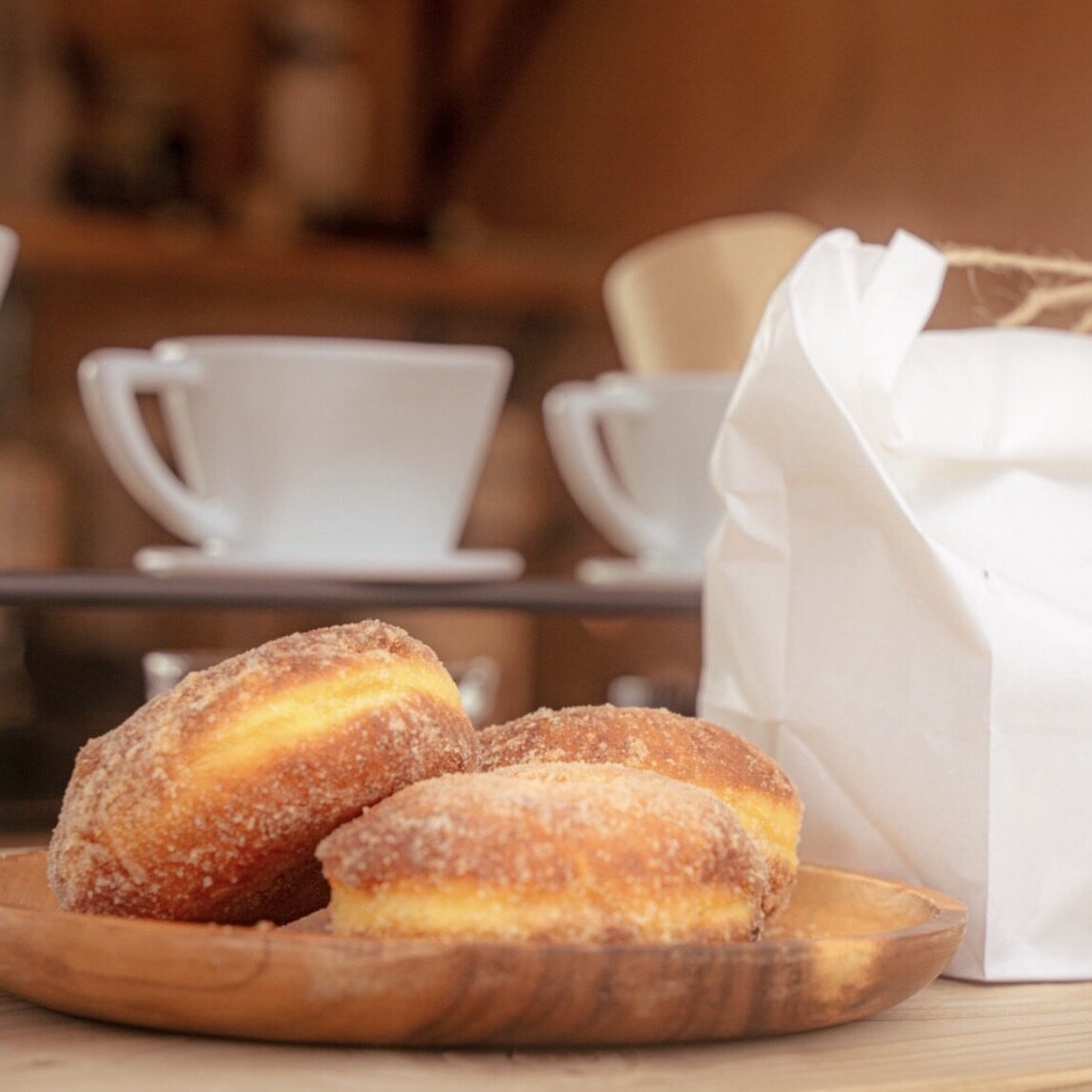 | 笛吹市・黒坂オートキャンプ場のオープンテラスカフェ。山梨県産小麦「かいほのか」を使った人気No.1のふわもちドーナツをご用意しています。 | |