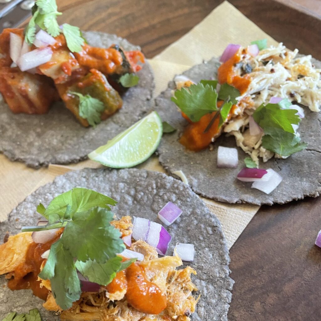 | 山梨県産野菜や富士桜ポーク、信玄鷄を使った手作りタコスのキッチンカー。幻のお米「農林48号」のごはんや自家製ドリンクも楽しめます。 | |