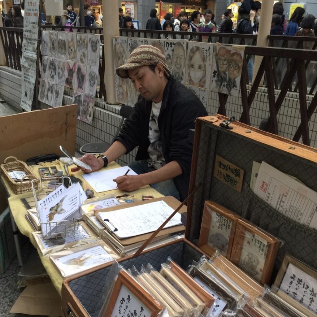| 化粧品で色を塗る似顔絵を制作。写真や写メOKで待ち時間なし。お一人1000円、ペットも同価格。額装は+500円で対応します。 | |