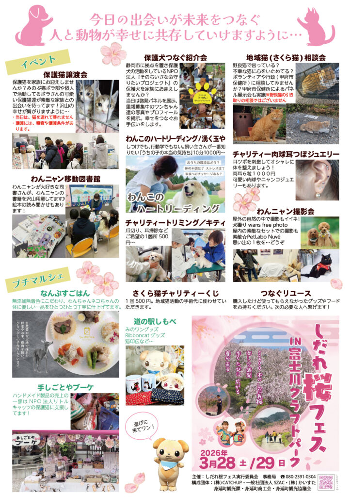 動物たちとの出会いや学び、そしてチャリティーマルシェなど